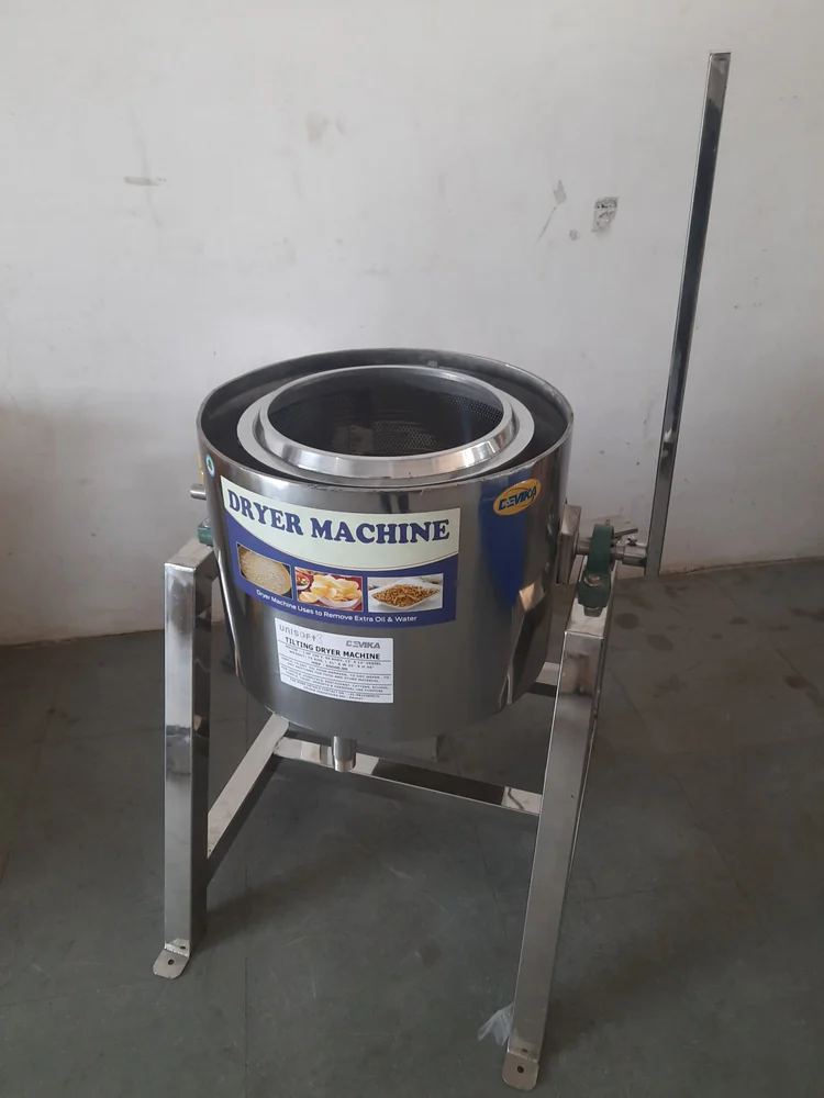 Our Tilting Oil Dryer Machine is designed for snack manufacturers, food processors, and commercial kitchens to efficiently remove excess oil from fried products. With its tilting mechanism, it ensures easy unloading, hygienic handling, and faster production – making it an essential machine for chips, namkeen, and fried food industries.